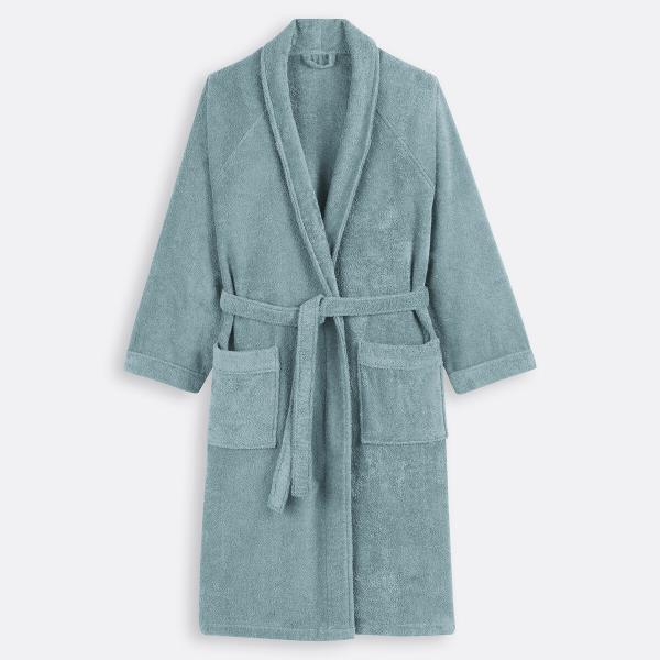 Peignoir éponge col châle 450g/m² Bleu grisé 50/52