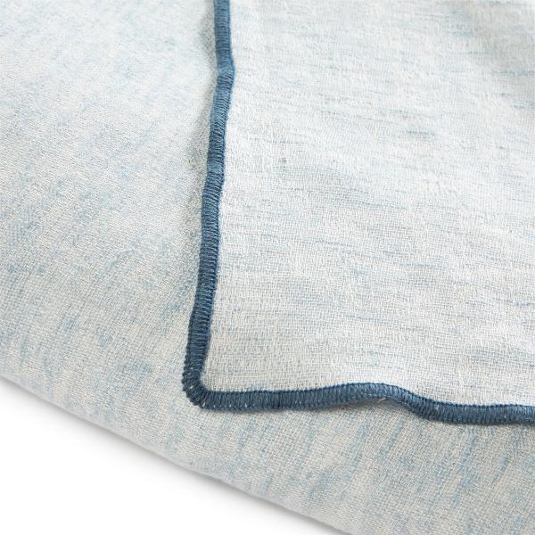 Plaid coton/lin/viscose Mathildi Céladon/écru/bleu paon 130x170 cm