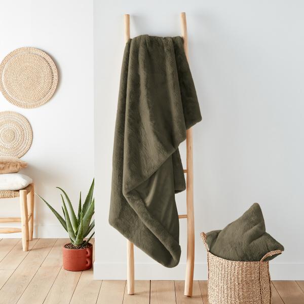 Plaid duveteux, Colton Kaki 130x170 cm