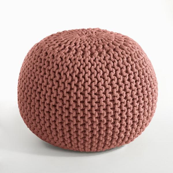 Pouf rond tressé BISHO Ecru T. Unique