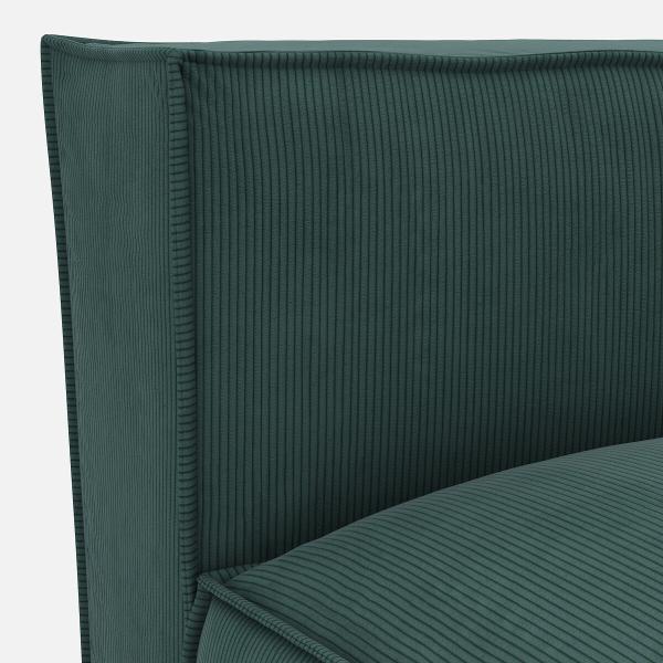 Modulable, en velours côtelé et fabriquée en France, la récamière droite Seven permet de créer un salon pile dans l'esprit des Seventies. Elle s’associe à la perfection aux autres modules de la gamme comme le pouf, la chauffeuse, la méridienne...Les modules s'accrochent entre eux au niveau de la base par un système de pinces crocodiles et de picots. Une fois fixés, les modules ne bougent plus. Ils peuvent se séparer facilement en soulevant le module qui n'a pas la pince crocodile pour le désolidariser des autres.