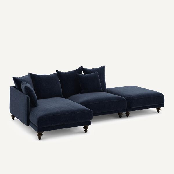 Repose-pieds velours chenille, Lazare Bleu de minuit 1P