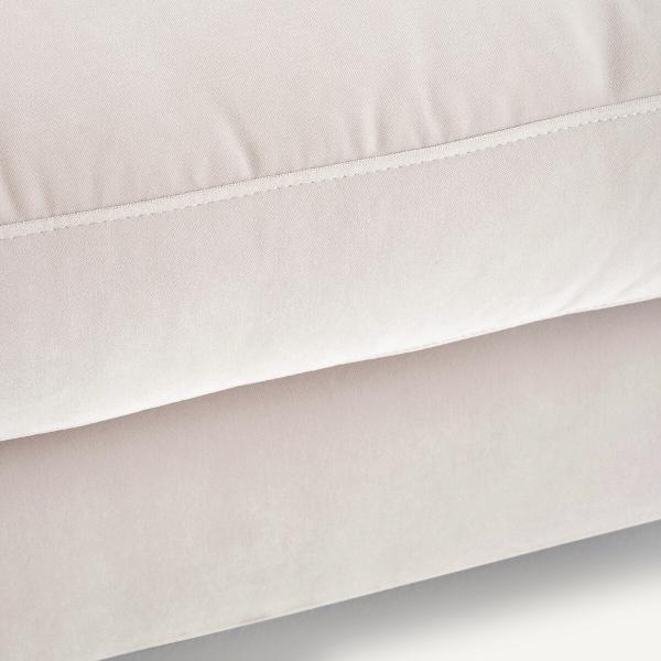 - Assise (1 coussin) : mousse polyuréthane 35 kg/m³ et flocons de fibres polyester