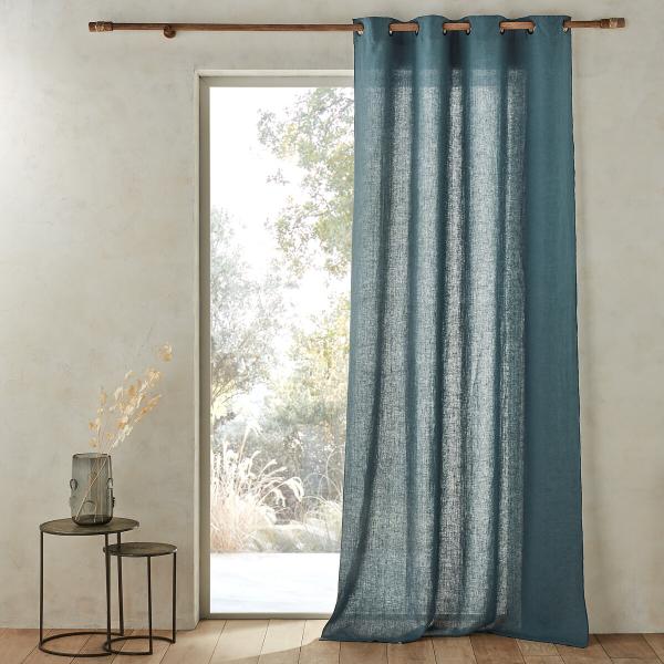 Rideau pur lin Romane Bleu paon 140x320 cm