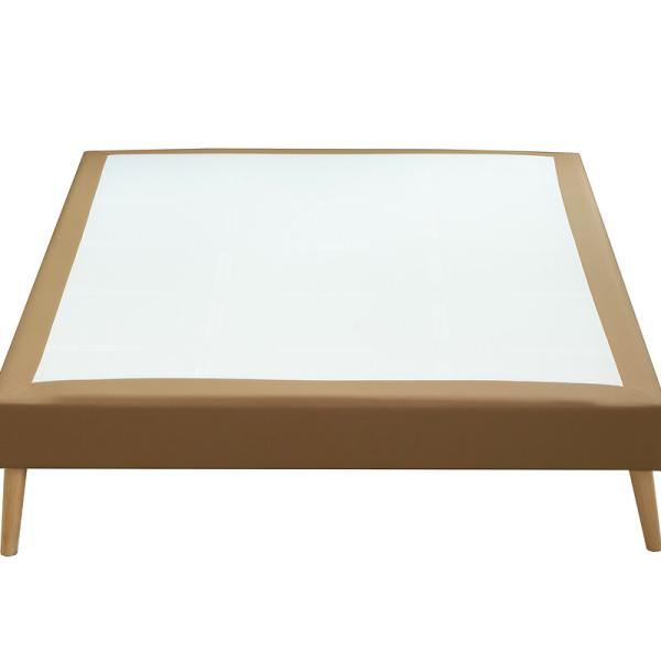 Sommier tapissier déco lattes recouvertes Camel 140x190 cm