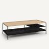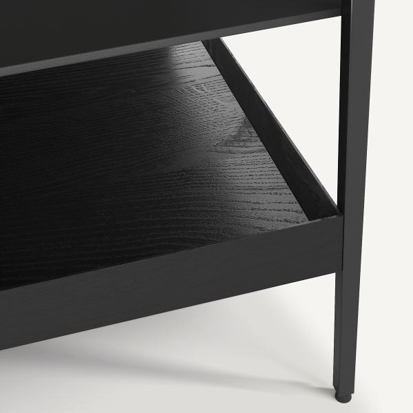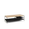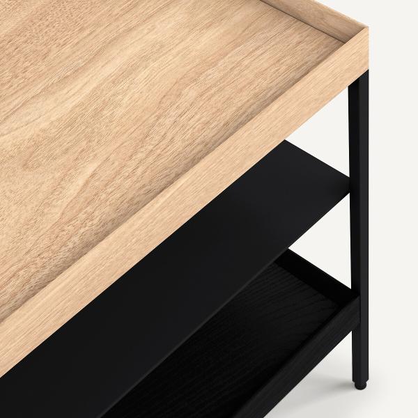 - Plateau de dessus en MDF plaqué chêne FSC© finition vernis nitrocellulosique, plateau du bas teinté noir, épaisseur 3 cm