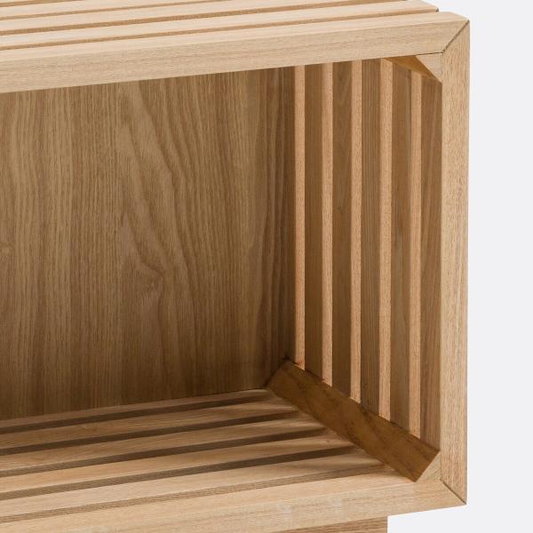 - Caisson central en MDF plaqué frêne, finition vernis nitrocellulosique