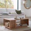 Contemporaine, cubique, fonctionnelle… La table basse Lazar apporte une touche graphique à votre salon. Elle offre 2 niches - 1 ouverte et 1 à lattes - pour ranger magazines et télécommandes et libérer le plateau supérieur.Une création de nos designers La Redoute Intérieurs.
