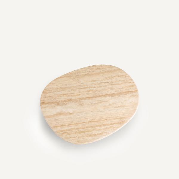 - Plateau en travertin, une pierre originaire de Turquie, chaque pièce est unique. En effet, les marbrures et aspérités peuvent varier d'une table à l'autre.