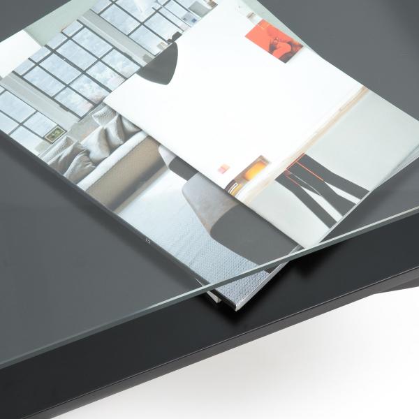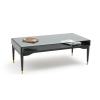 Avec une touche de design des plus élégants, sublimez votre salon grâce à la table basse Novani : vitrine sous le plateau en verre trempé, coloris noir aux reflets multiples et touche de laiton aux pieds forme conique.