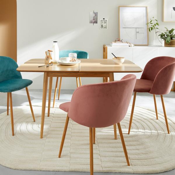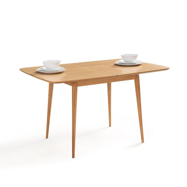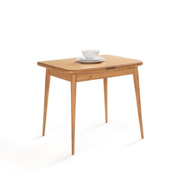 La table de cuisine extensible Aylin. Contemporaine et pratique, la table de repas adopte le style néo rétro. Pratique grâce à son allonge portefeuille, elle se transforme en table repas 4 à 6 couverts.