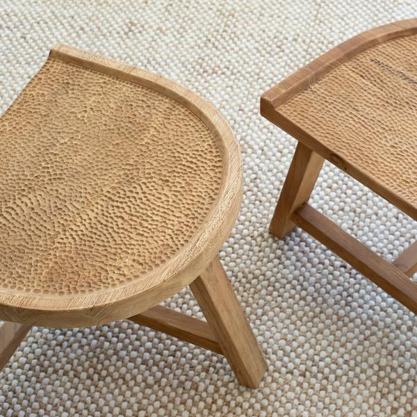 Forme épurée, simplicité des formes, matériau brut, le tabouret Barville est fabriqué en teck selon un savoir-faire artisanal. L’assise creusée à coups de gouge rappelle l’artisanat d’art des meubles traditionnels.Conçu avec trois pieds volontairement courts, le tabouret Barville s'installe devant une table basse ou peut également servir de meuble d'appoint. Une création AMPM.