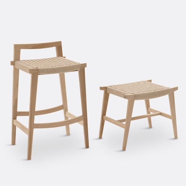 Tabouret chêne et tressage, Kioto Naturel T. Unique