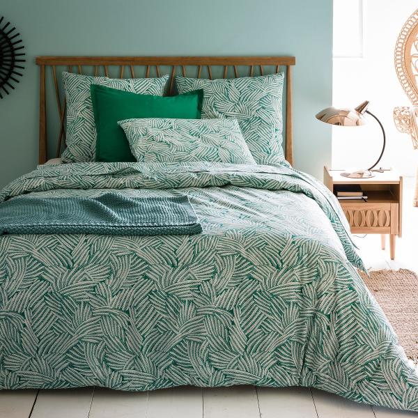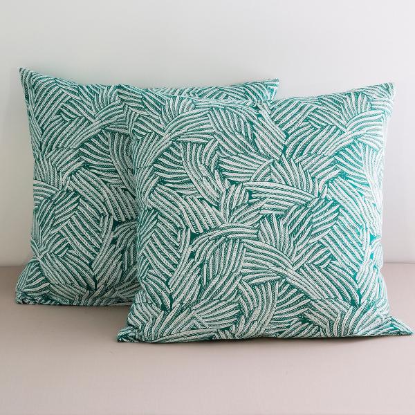Taie coton, Ycata Blanc/vert 63x63 cm