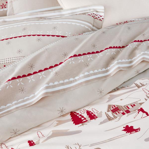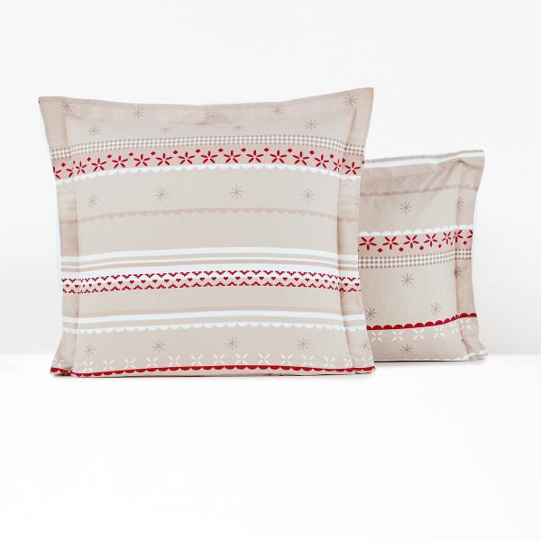 Taie d'oreiller coton, Tyrol Beige/rouge 63x63 cm