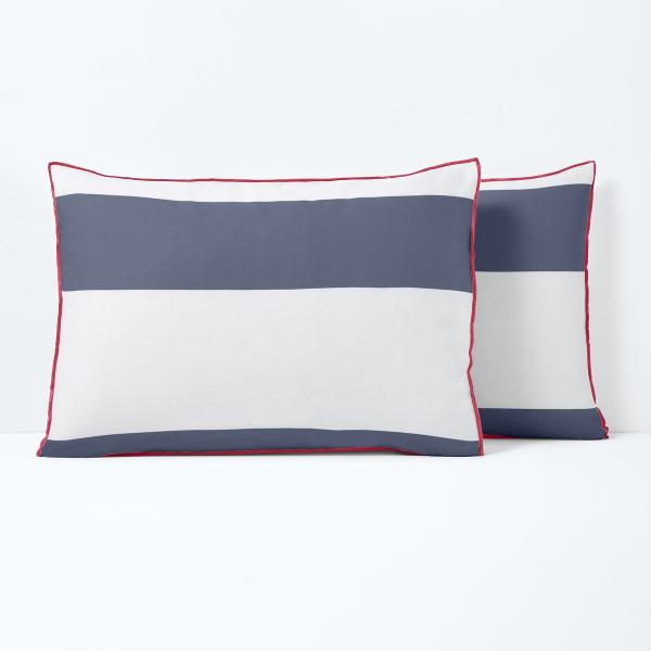 Taie d?oreiller coton, Yacht Bleu/blanc 63x63 cm
