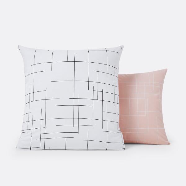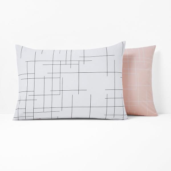 Taie d?oreiller réversible, Charline Blanc/rose/noir 63x63 cm