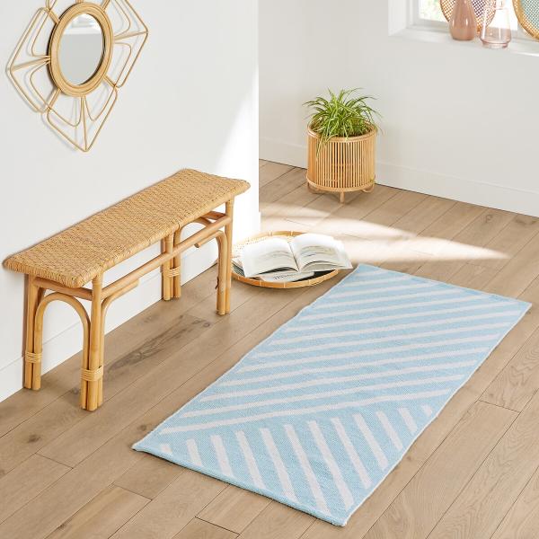 Tapis de couloir polyester recyclé Bleu/blanc 70x150 cm