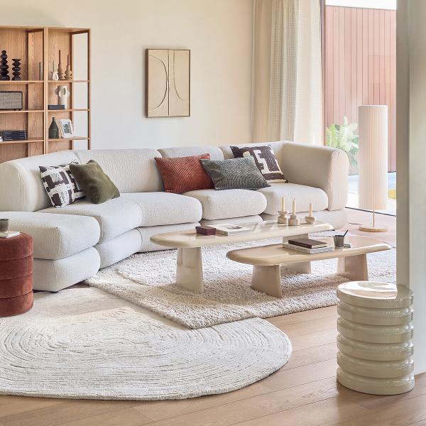 Sobre, graphique, contemporain. Avec son motif en relief évoquant un cadre aux bords arrondis, le tapis Opala créera instantanément une ambiance cosy et accueillante dans votre intérieur. Fabriqué en Belgique.