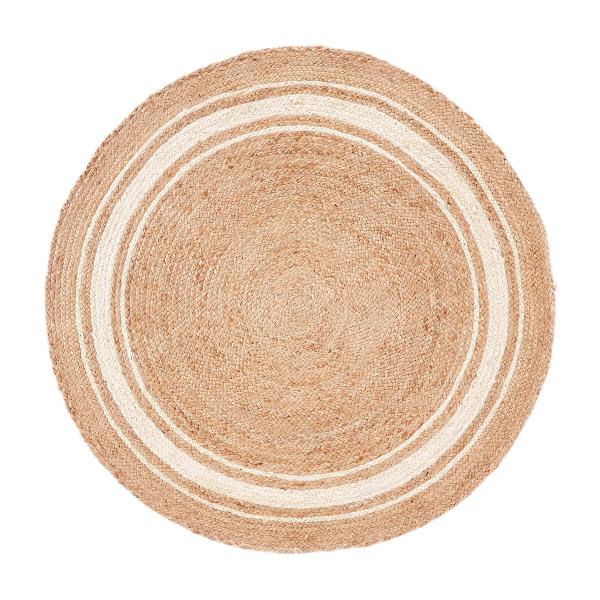 Tapis jute rond, Aftas Naturel/blanc Diam 120cm