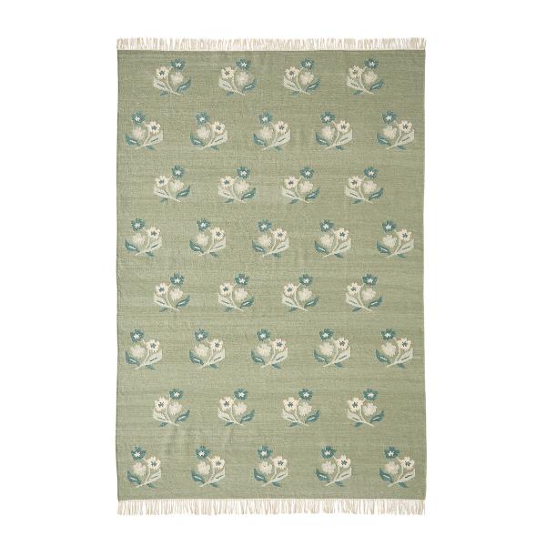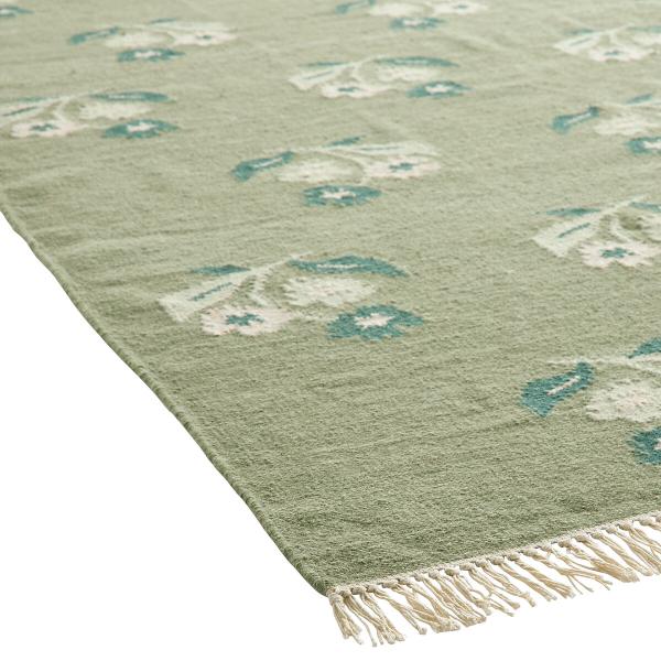 Esprit kilim réinterprété. Délicatesse du motif fleurs. Tonalités sourdes. Avec le tapis tissé main Lysea, faites entrer chez vous un air de campagne chic.Description
