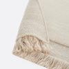 Ligne sobre et intemporelle. Le tapis Osni fait dans la simplicité pour s'intégrer dans tous les espaces de vie. Bordé des deux côtés d'une bande latérale et de franges, tissé main, il est en laine et coton pour le confort et le moelleux.Description
