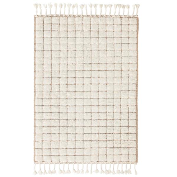 Tapis laine motifs damiers, Ladama Ecru 120x170 cm