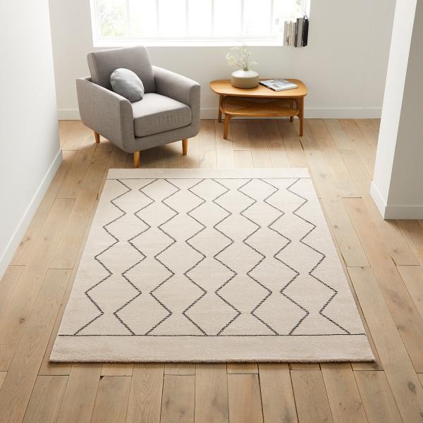 Le tapis style berbère Oliban. Ce tapis, inspiré de l'artisanat, s'accorde parfaitement aux intérieurs de style contemporain.