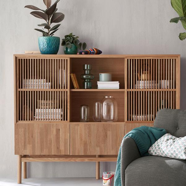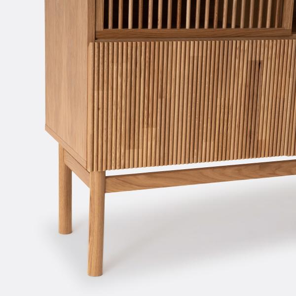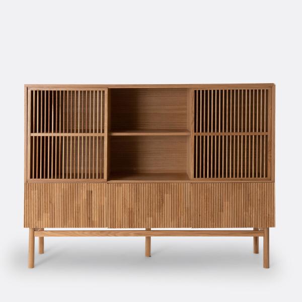 Plus urbain, plus contemporain, on aime tout dans le vaisselier Pilpao : le jeu de rainures et de barreaux sur ses portes, ses espaces de rangement...