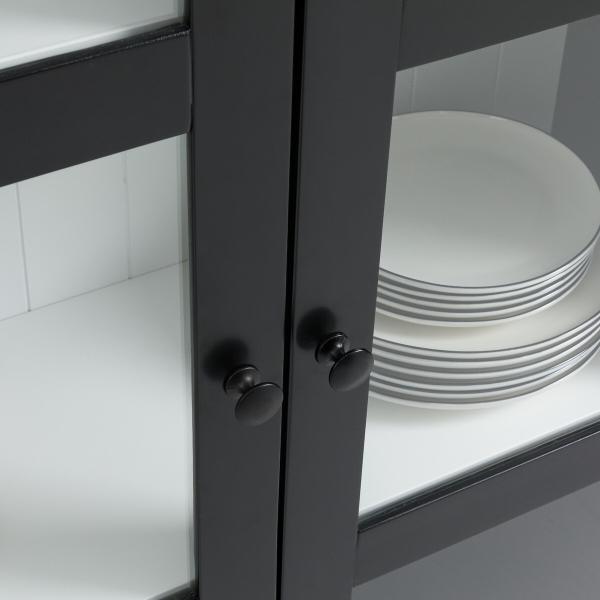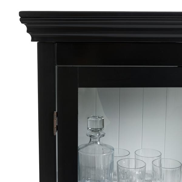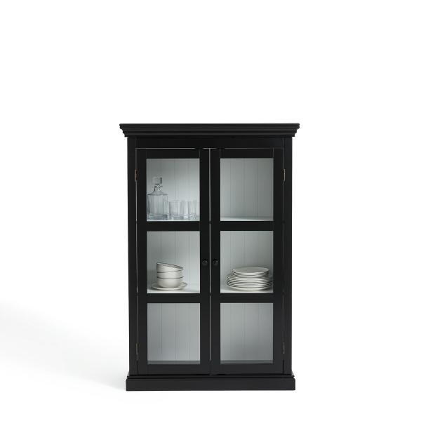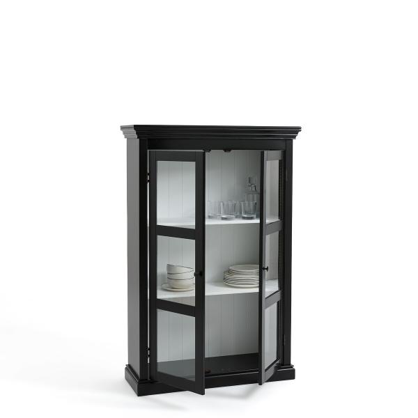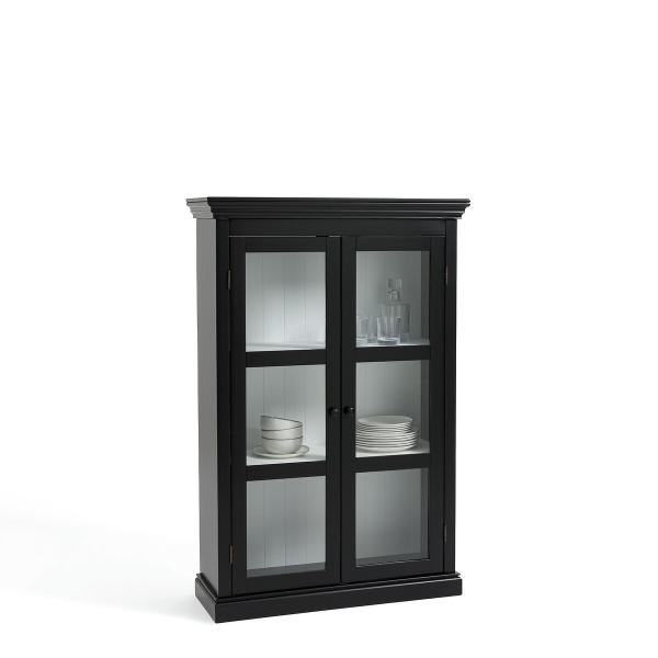 En toute transparence. Jolie et pratique à la fois, la vitrine Takk expose vaisselle et verrerie aux regards extérieurs. Corniche moulurée, fond lambrissé, et pin massif noir satiné : Takk est une création originale signée La Redoute Intérieurs.Description