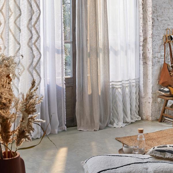 Voilage nouettes lin/coton, Nenio Naturel/noir 260x135 cm